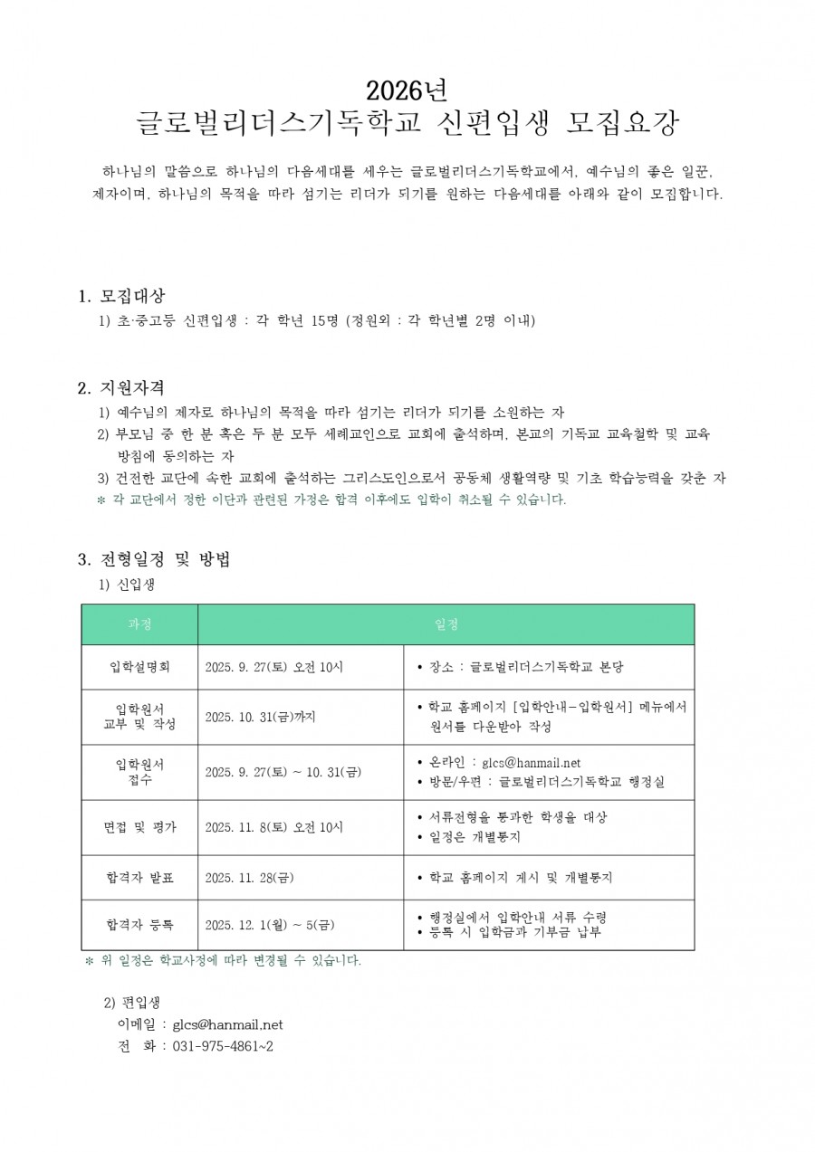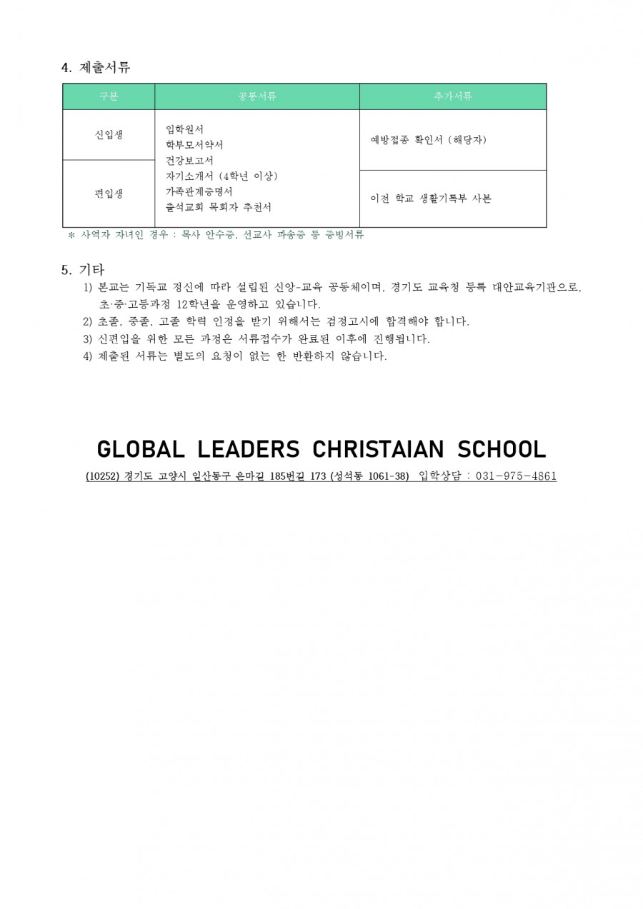 주소 : (10252) 경기도 고양시 일산동구 은마길 185번길 173 (성석동 1061-38) 글로벌리더스기독학교