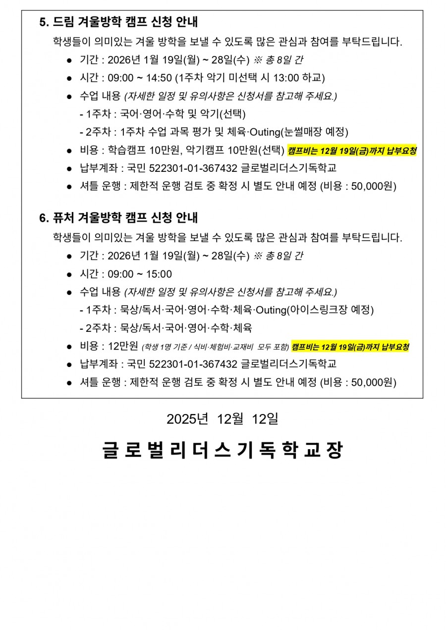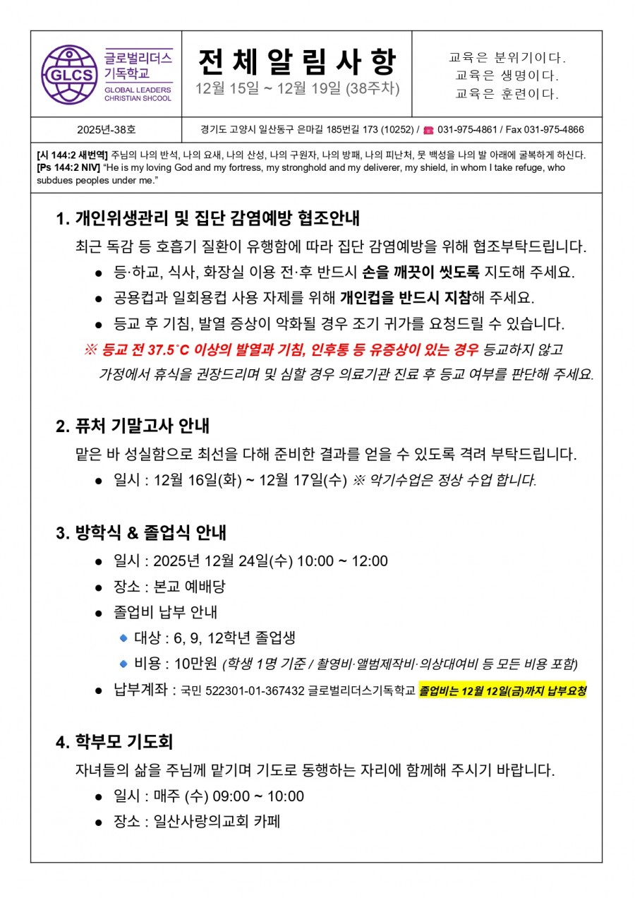 글로벌리더스기독학교 - Community - 공지사항