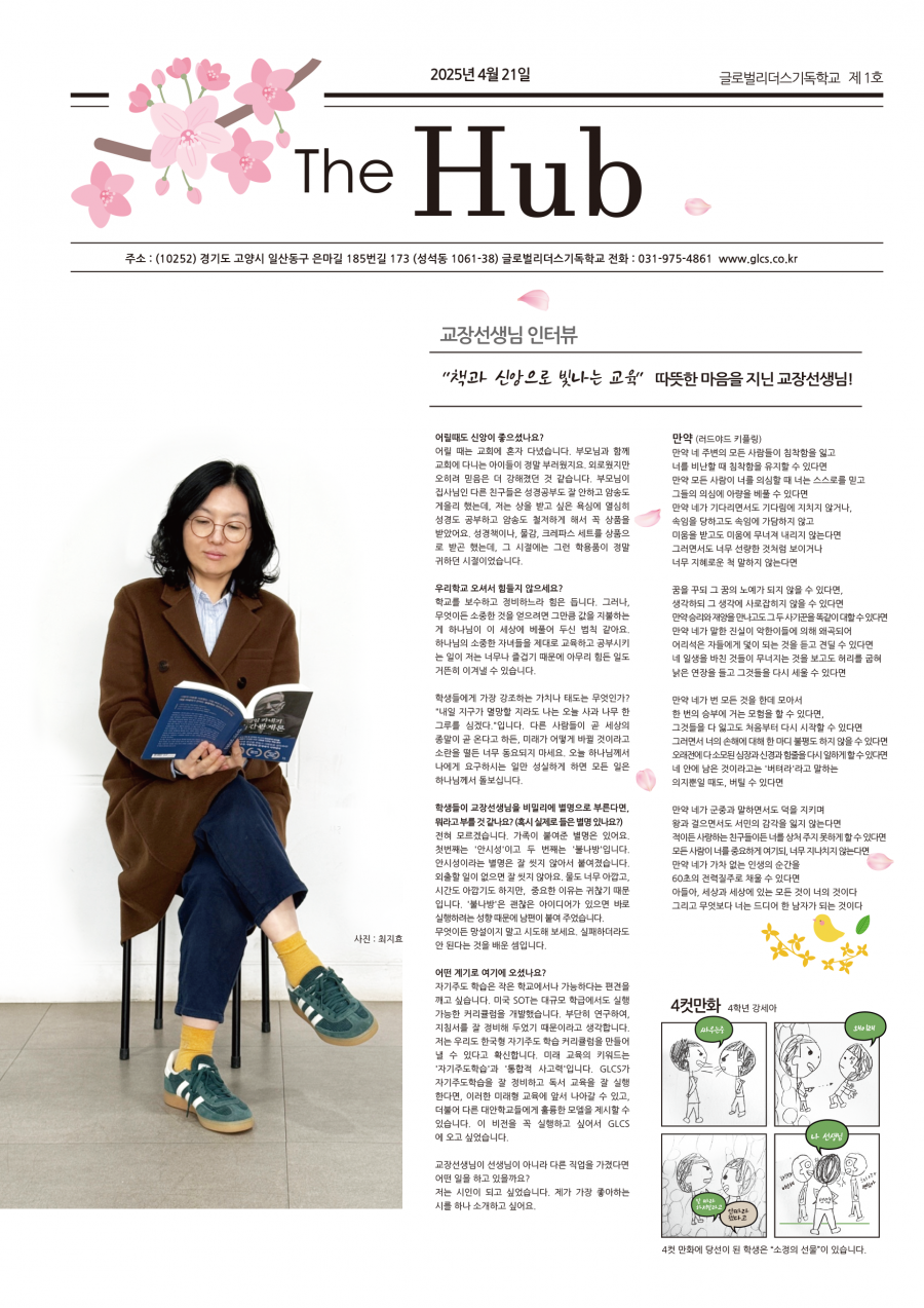 학교 신문 동아리 [4월호 The Hub] 입니다. 페이지 정보 작성자 관리자 댓글 0건 조회 296회 작성일 25-04-25 15:21 본문 목록 댓글목록 댓글목록 등록된 댓글이 없습니다.